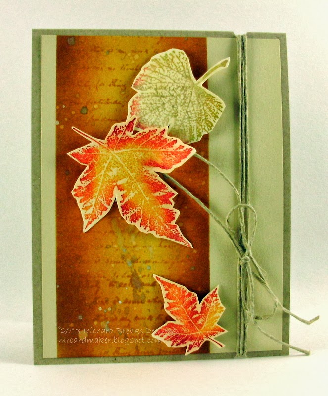 ReplyDeleteWicked cool card, Richard! The efforts with ink are certainly worth it as this is just stunning, it looks like autumn herself!! Enjoy your cooler weather, I know I am! Hugs!