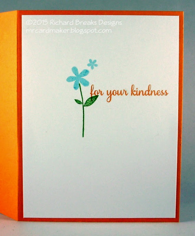 Funny thing, but this is one of the few times I have done a larger edge around my panels on a card. That orange was so yummy, I really wanted to see more of it. It DOES feel weird breaking that 1/4" idea, though, I have to say.