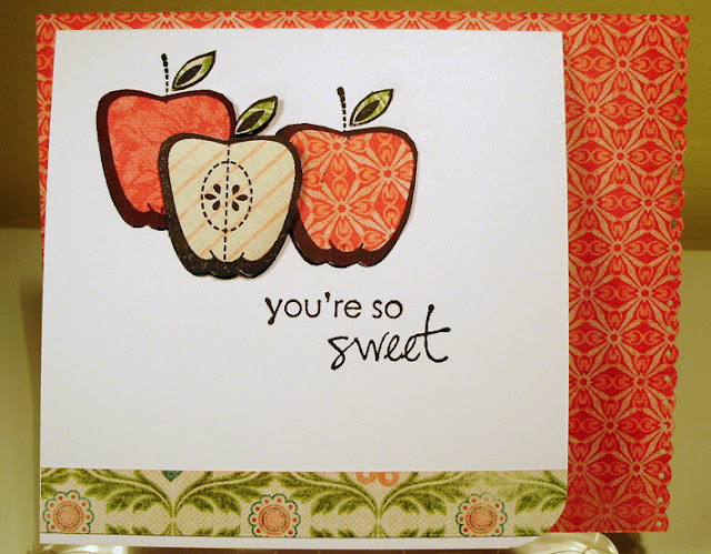 For this one, I had to mask off the core part of the stamp in order to get a "whole" apple look. Yum!