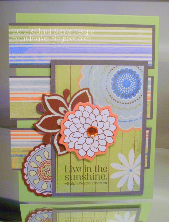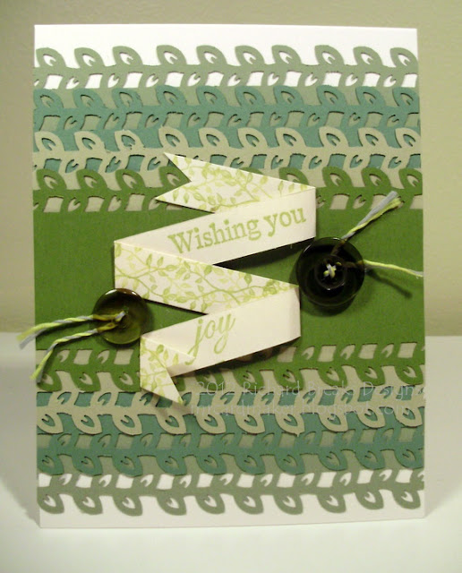 This is a pretty simple card, for the most part. I used almost all SU! card stocks and DPs, with the exception of the light green piece. That, I believe is by Fiskars, and I bought a single sheet of it ages ago.