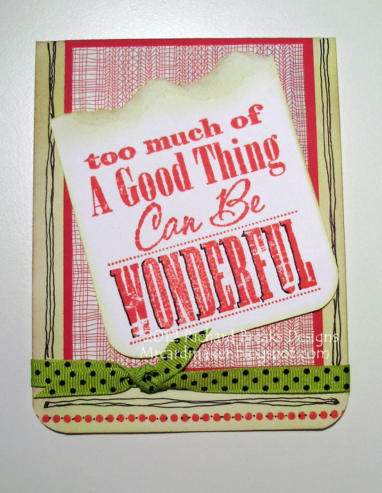 I added the sentiment piece at the end, and trimmed the overhanging edge off by hand.