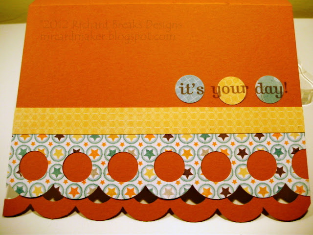 This was done with My Mind's Eye papers on GinaK Designs Kraft card stock. The brown is SU, and that is attached to the striped band.