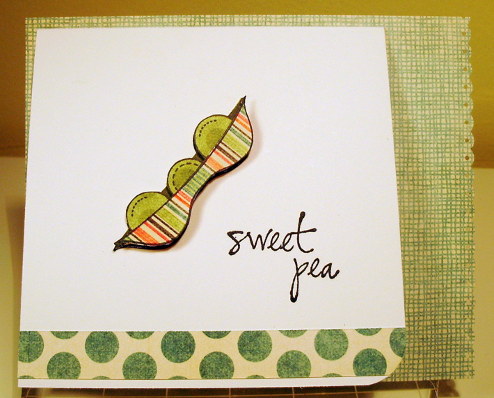I topped that with my sentiment on white cs, which I edged with Distress Inks Antique Linen. I can't remember which green ink I stamped the sentiment in, but I think it might be ColorBox Chalk ink.