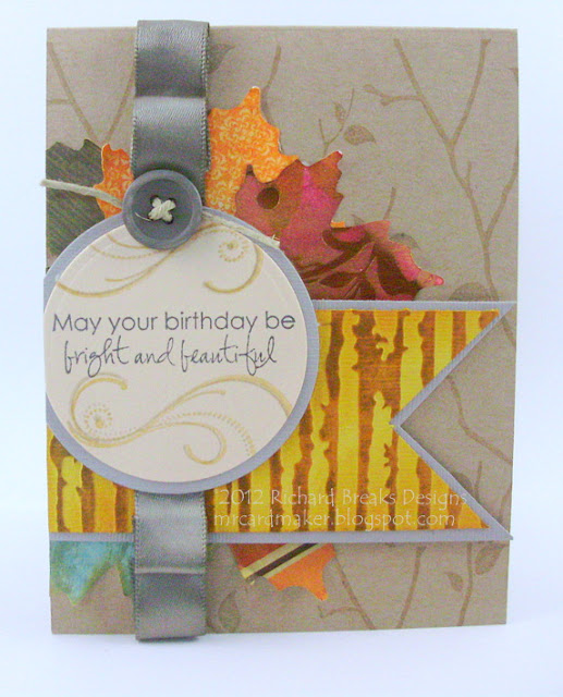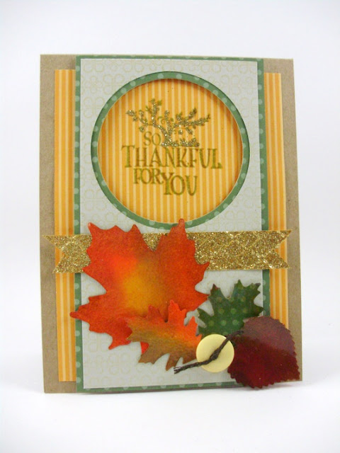 The sentiment is from 7Gypsies, and the leaf stamps are from Studio112. I used the same leaf technique for the card stock leaves, as I'm sure you can tell.