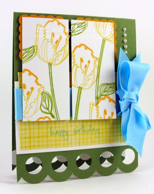 Turns out, my neighbors Chris (across the street) and Eric (behind us) had been out with their tractors, and after they did their own leaves, got to chatting and decided to make a contest of "who-could-get-up-our-leaves-fastest." Are these guys the best, or what??? Well, I baked them cookies, and, of course, made them cards.