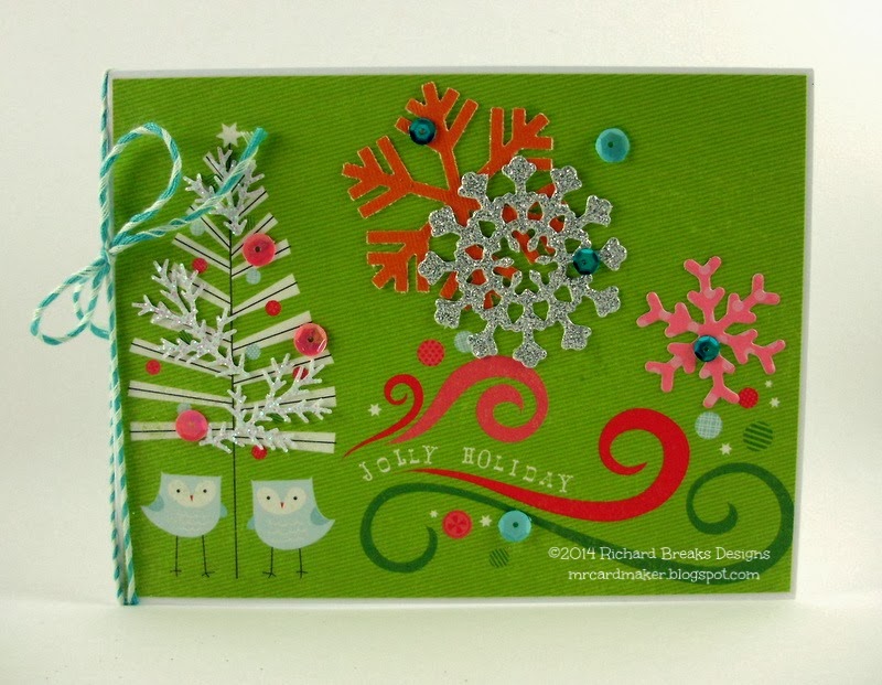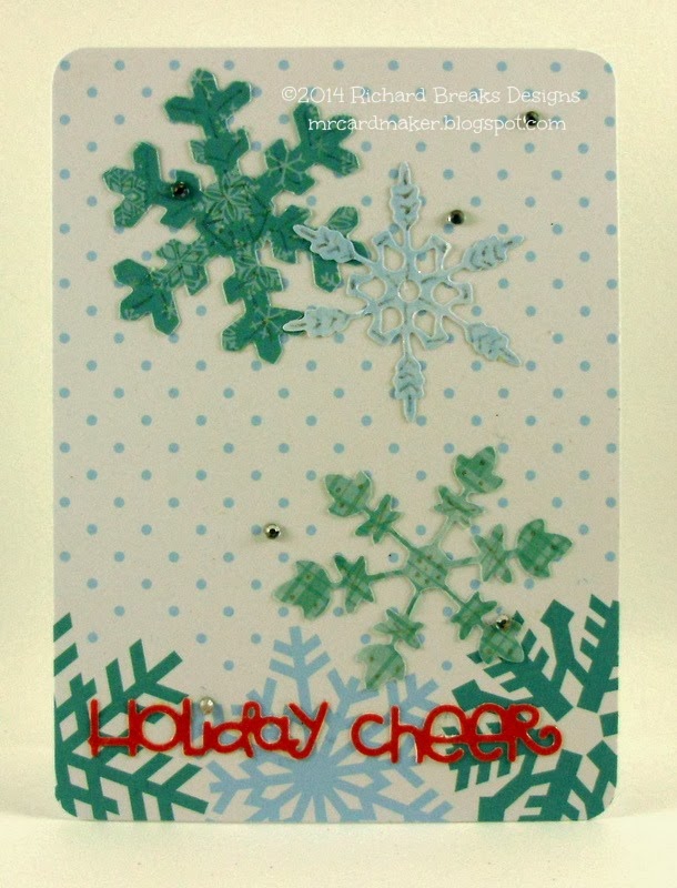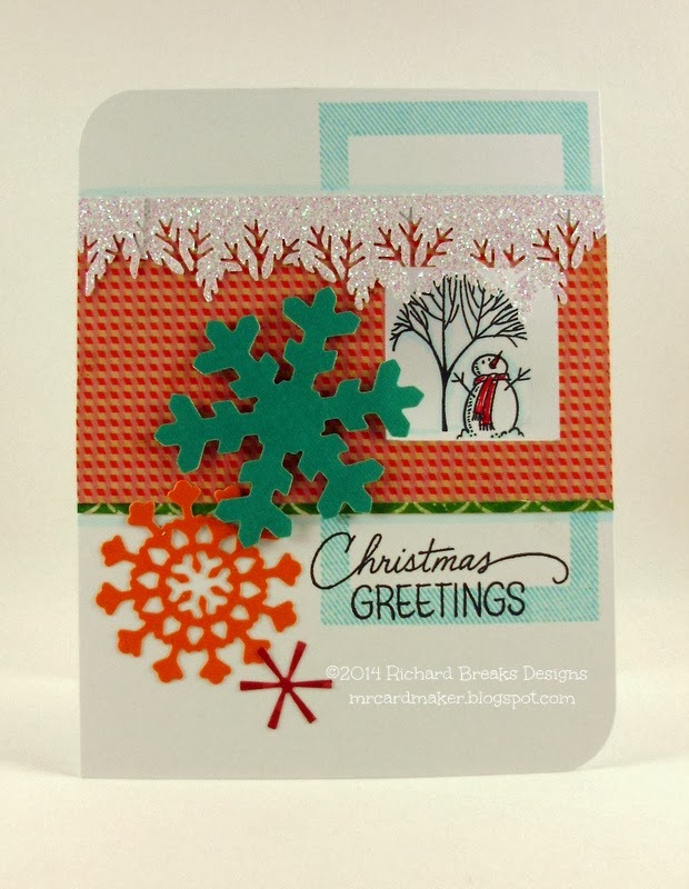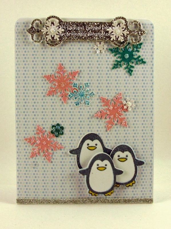 Letting the paper do most of the work here....Just adding a few die cut snowflakes and some bling finishes it all off.