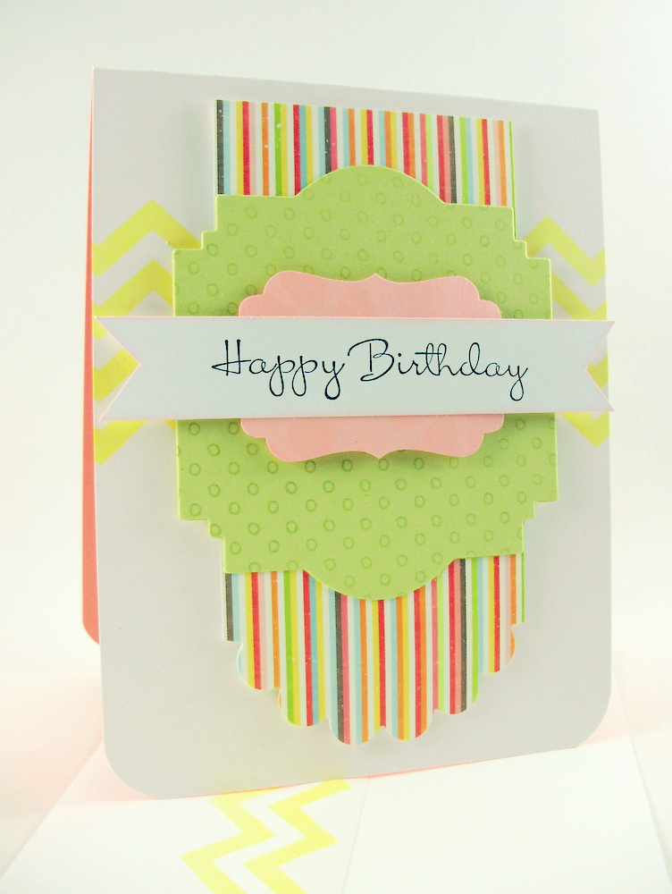 1) BOLD shapes and textures. Strong geometrics, chunky die cuts, distinct lack of flowers and swirly things. You can also look to patterns from fabrics like houndstooth, argyle, and plaids (oh, the varied and happy world of PLAID!)
