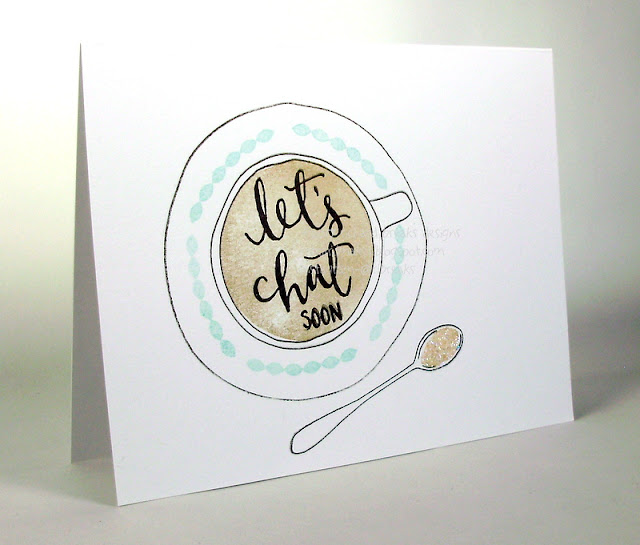I bought the "Let's Chat" stamps, and really love them. I like the bold, yet loose style, and the sentiments are nice. And, of course, it's about coffee. 'Nuff said.