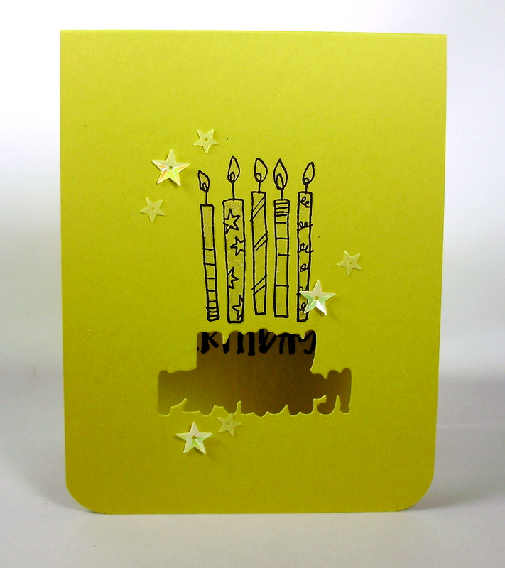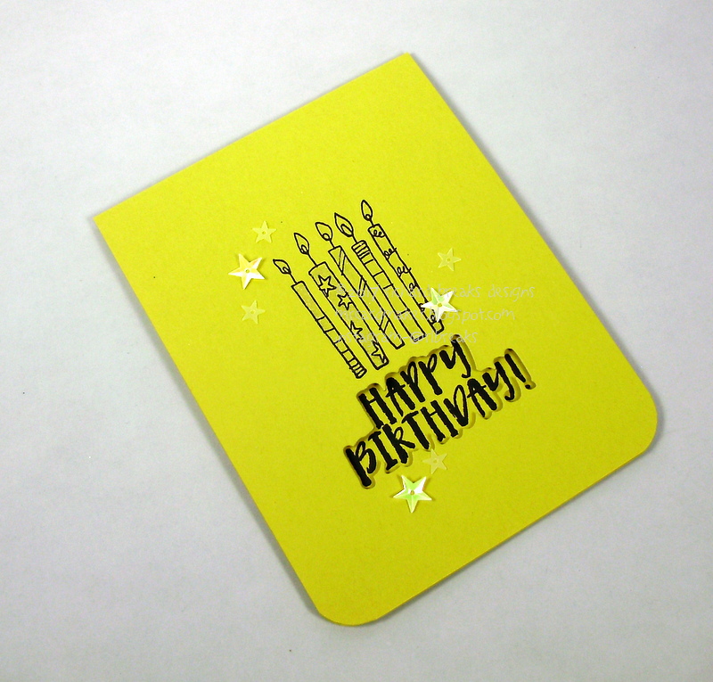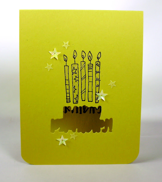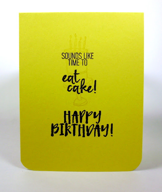 I kept the image are on the simple and petite side. That cake stamp makes me so happy, and there's a world of variety to be had as far as coloring the thing. I also love that the Happy Birthday sentiment has a die of its very own, too!