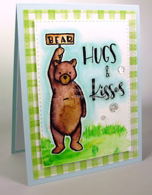 Well, I have a new-to-me stamp set from Concord & 9th called Hugs, and it has the sweetest bear stamp. I wanted to use it for a card for Charlie for our 3rd wedding anniversary (together almost 26 years, don'tcha know), and so I dove right in.