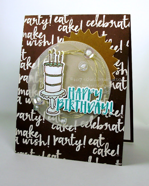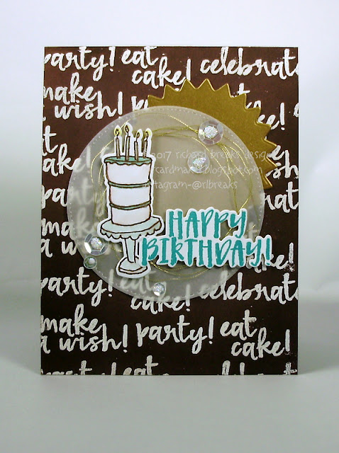 Building the birthday stash again, and using some of my newest acquisitions. Eat Cake ad Celebrate is a fun stamp and die (sold separately) set from Concord&9th, and I have had some fun playing with it.