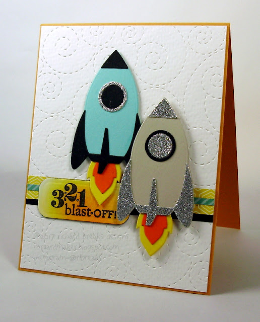 These rockets are so awesome. Clean, tight, totally representative of everything that says ROCKET. Love the flames. Aren't the swirls in the background cool? That Jeanne. She finds the best stuff for us...