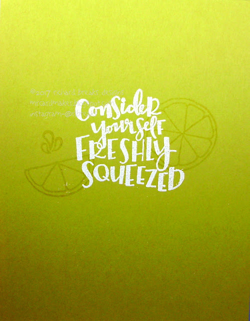 Anyway, I used versamark ink to stamp the slices on the card base, which is made from Stampin Up Summer Starfruit cardstock. Discontinued. So sad. I love that color.