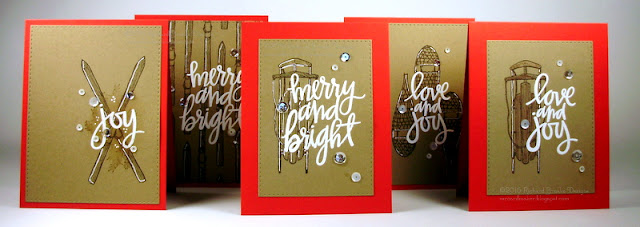 These cards are done with SU Warm Wishes stamp set from 2015. I really wish this was still available. Papertrey ink has a set with similar images, though, and theirs has matching dies, which I love. The sequins here are from Neat & Tangled.